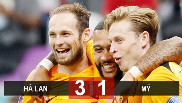 Kết quả Hà Lan 3-1 Mỹ, vòng 1/8 World Cup 2022