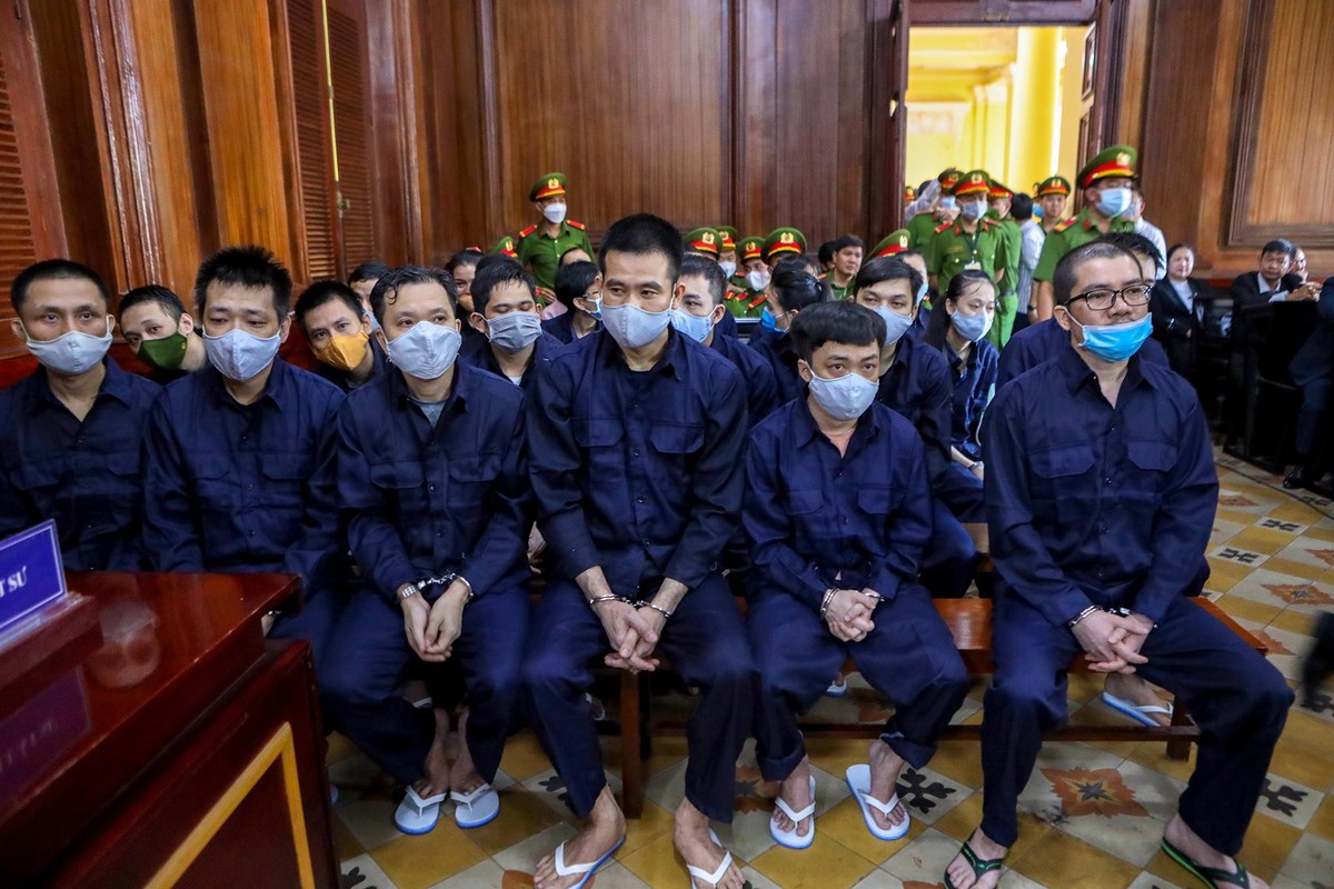 Bị cáo Nguyễn Thái Luyện (bìa phải, đeo kính), Chủ tịch HĐQT kiêm Tổng Giám đốc điều hành Công ty CP Địa ốc Alibaba và các đồng phạm hầu